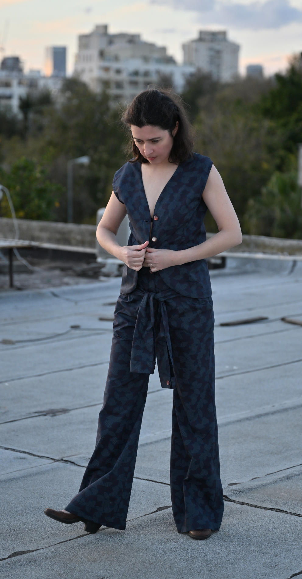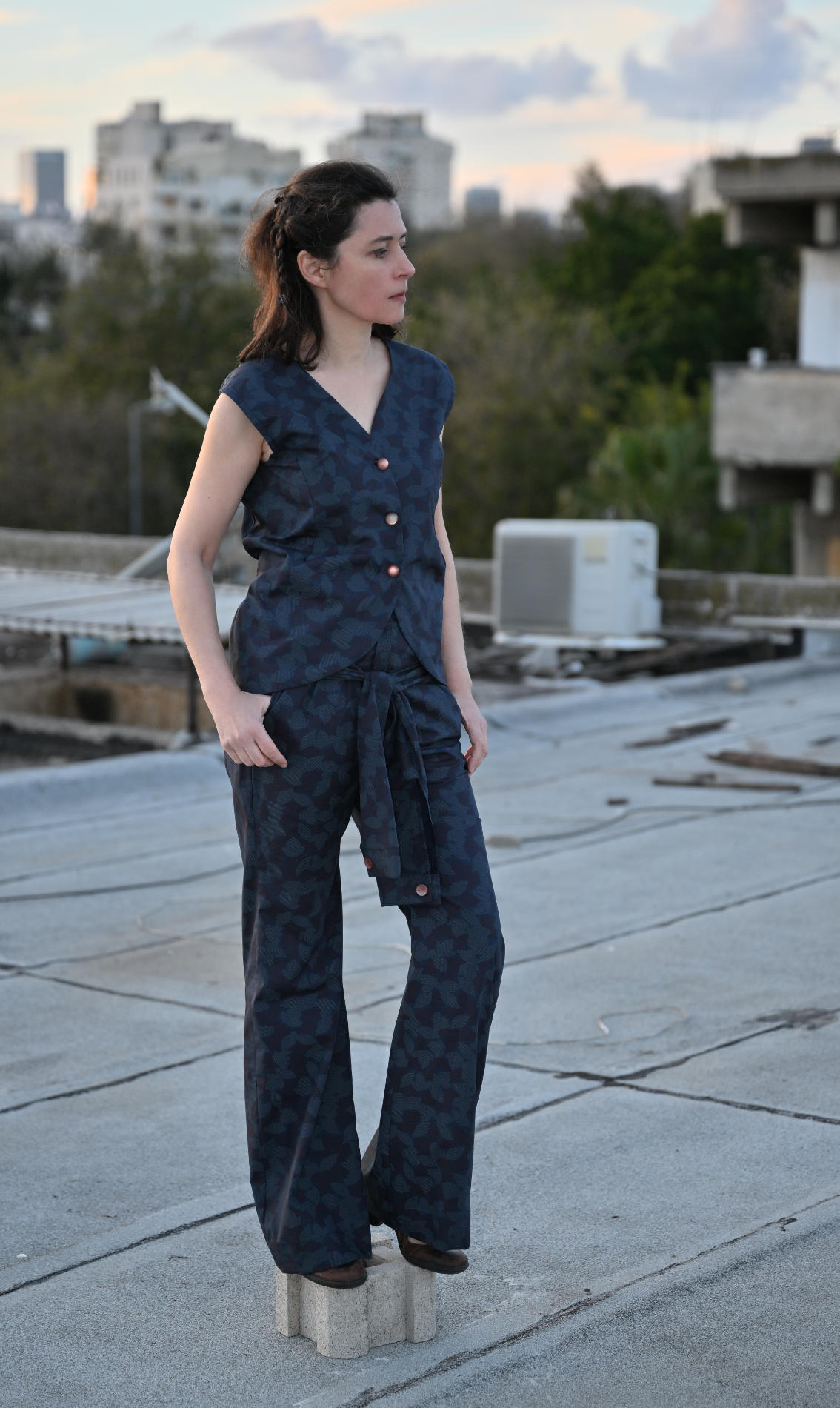 DIY linen set sewing kit tailored to your measurements. Includes custom-cut fabric, a reusable pattern, a step-by-step video tutorial, and all the materials you need to sew your own outfit at home.